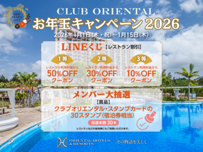 Members who enter the lottery from the official form on the LINE chat screen during the campaign will be entered into the lottery for the 30 stamps on the Club Oriental Stamp Card.