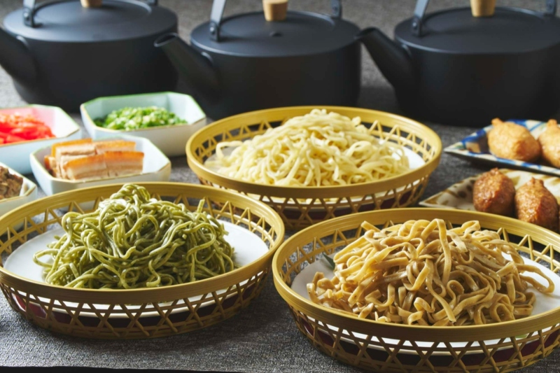 The daily rotating selection of Stir-Fry offers classics like Goya Champuru and Kubu Irichi (Kelp) Champuru. In the Okinawa Soba Corner, we offer Mozuku Noodles made with locally grown mozuku seaweed and the slightly bitter Yomogi Noodles. Pair these with our standard pork bone-based broth or try them with Chinese or Western style soups.