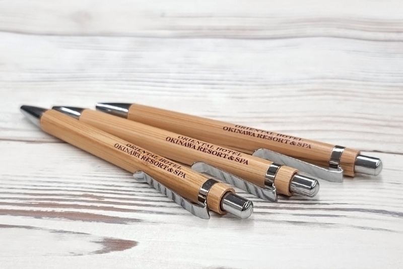 環境に配慮し、軸部分に竹を使用したボールペンです。