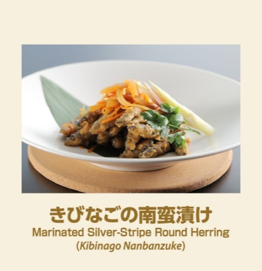新鮮なきびなごを、ほどよい酸味の南蛮だれに漬け込みました。さっぱりとした味わいが、魚の旨みを引き立て、口の中に爽やかな余韻を残す一品です。