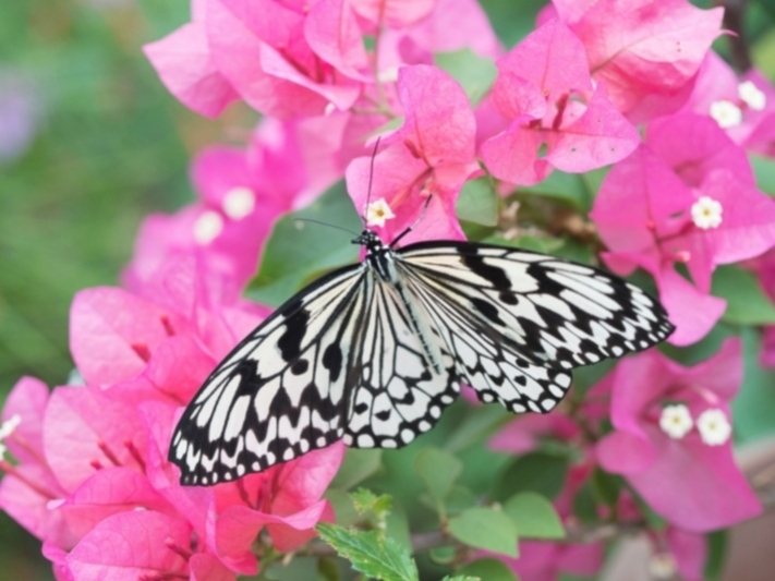 オオゴマダラは優雅に空を舞う姿から「南の島の貴婦人」とも呼ばれているそうです。また、さなぎの時には金色に光り輝き「見たものに幸せを届けてくれる」とも言い伝えられています。幼虫、さなぎ、成虫を展示することにより、間近で蝶の成長過程がご覧いただけます。