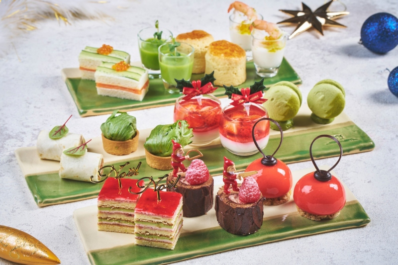 セイボリーメニューには、スパイス薫るホテルの人気メニューを厳選し、タコスミートとプチトマト、チーズをレタスで包んだ「タコスタルト」など、クリスマススイーツの甘みを引き立てるラインナップをご用意いたします。